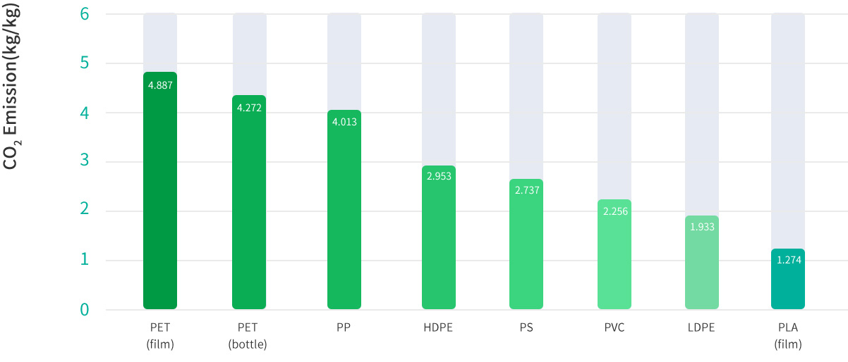 數據來源歐洲塑料:聚合物生產過程二氧化碳排放對比
